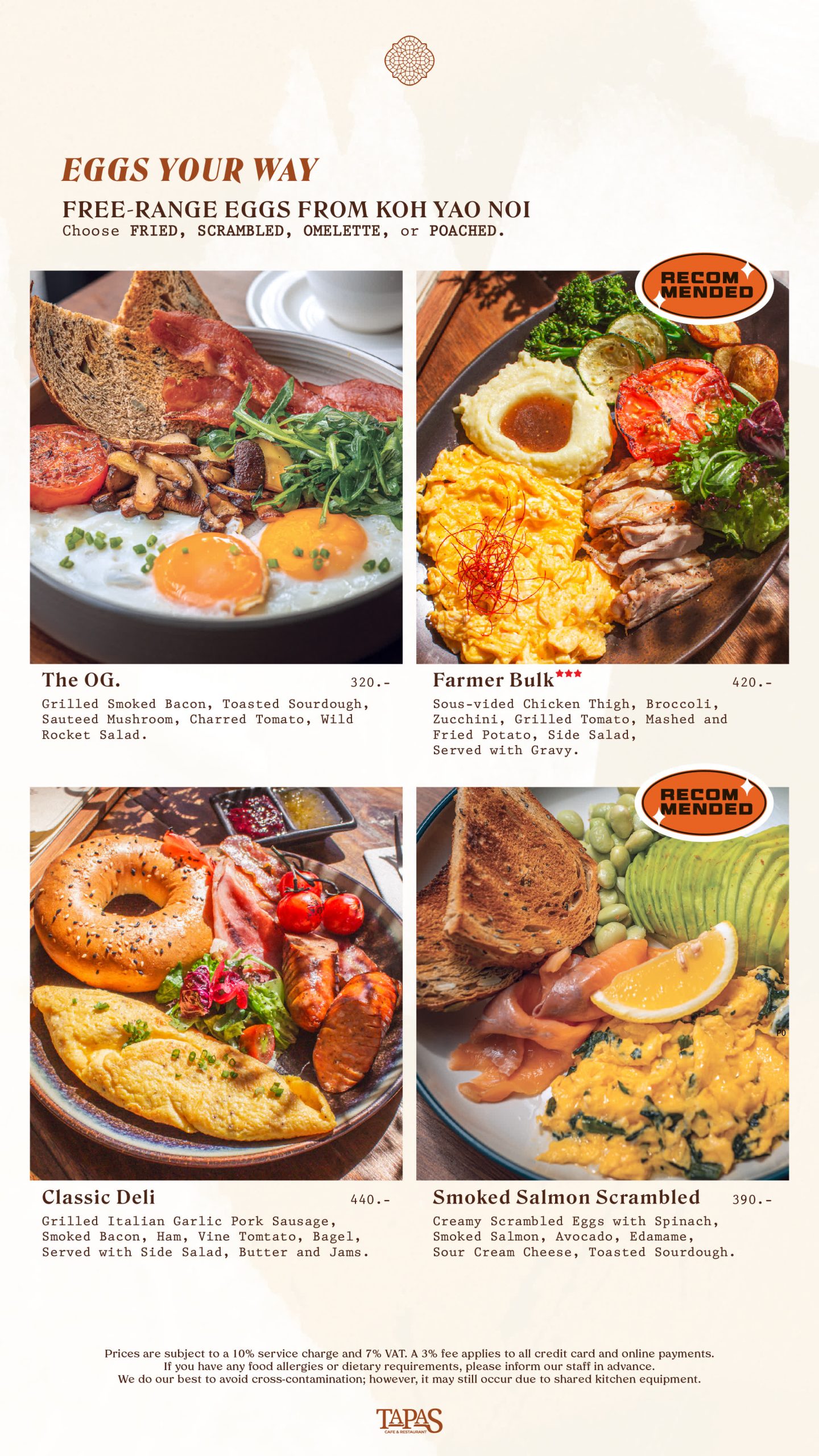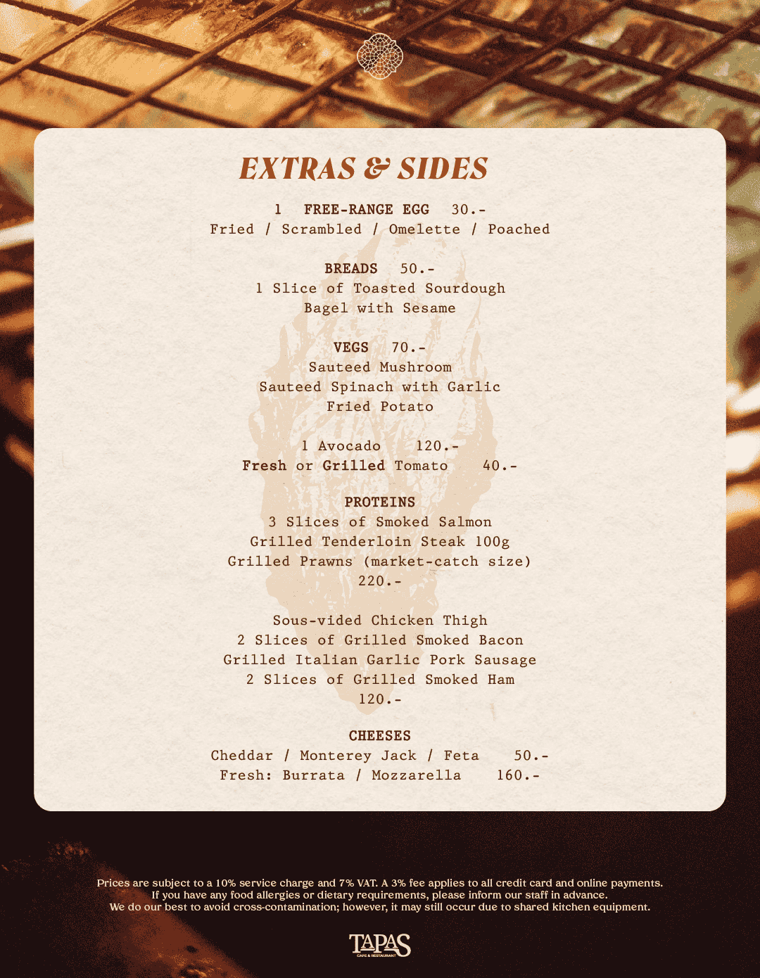 Prices are subject to a 10% service charge and 7% VAT. A 3% fee applies to all credit card and online payments.